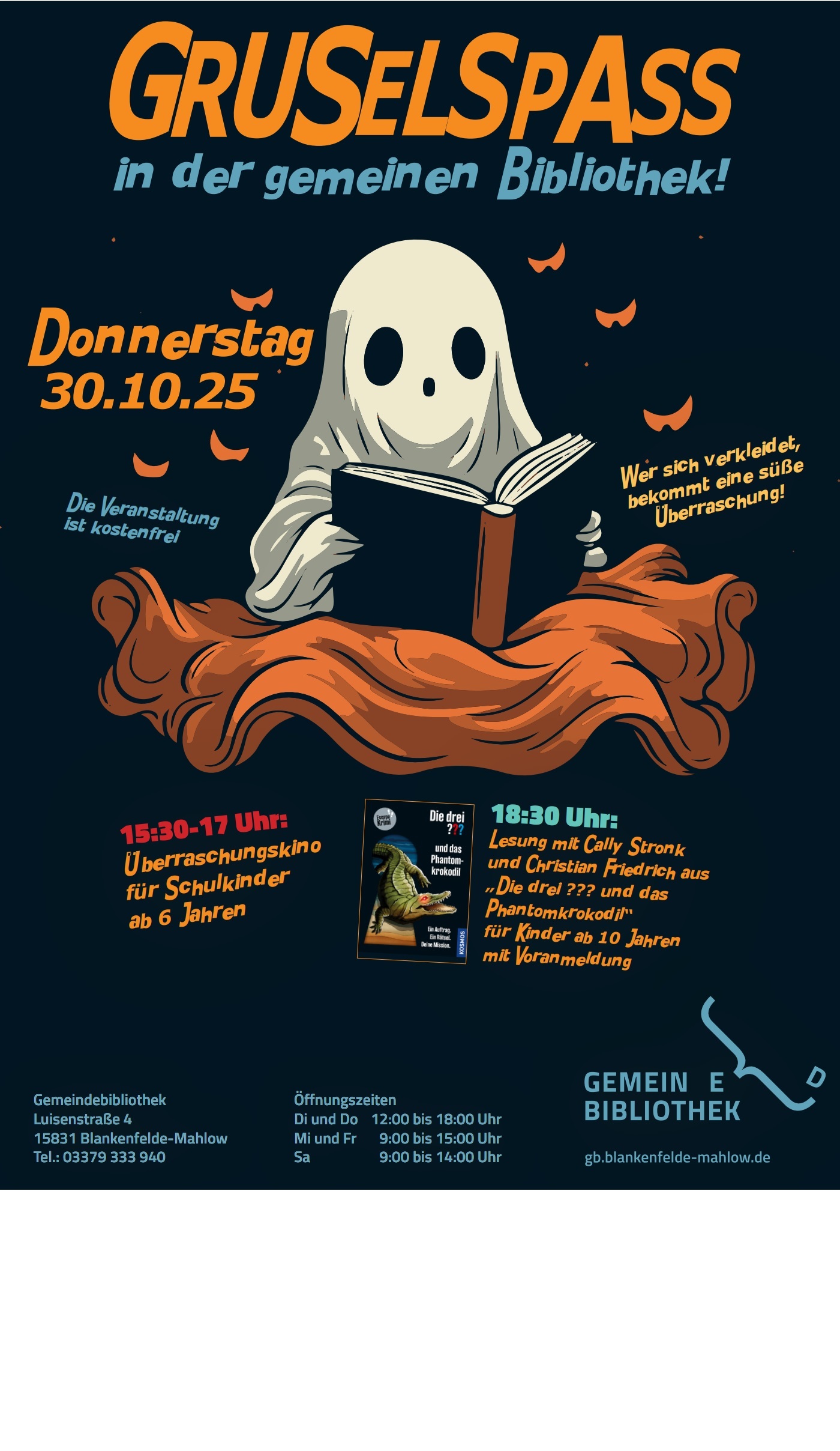 Hier findet Ihr zahlreiche Medien für jung und alt und immer wieder etwas Neues! Unsere Bibliothek ist barrierefrei, hat Spielräume für Kinder, gemütliche Lesebereiche und vieles mehr. Kommt doch mal vorbei und lasst Euch überraschen!
