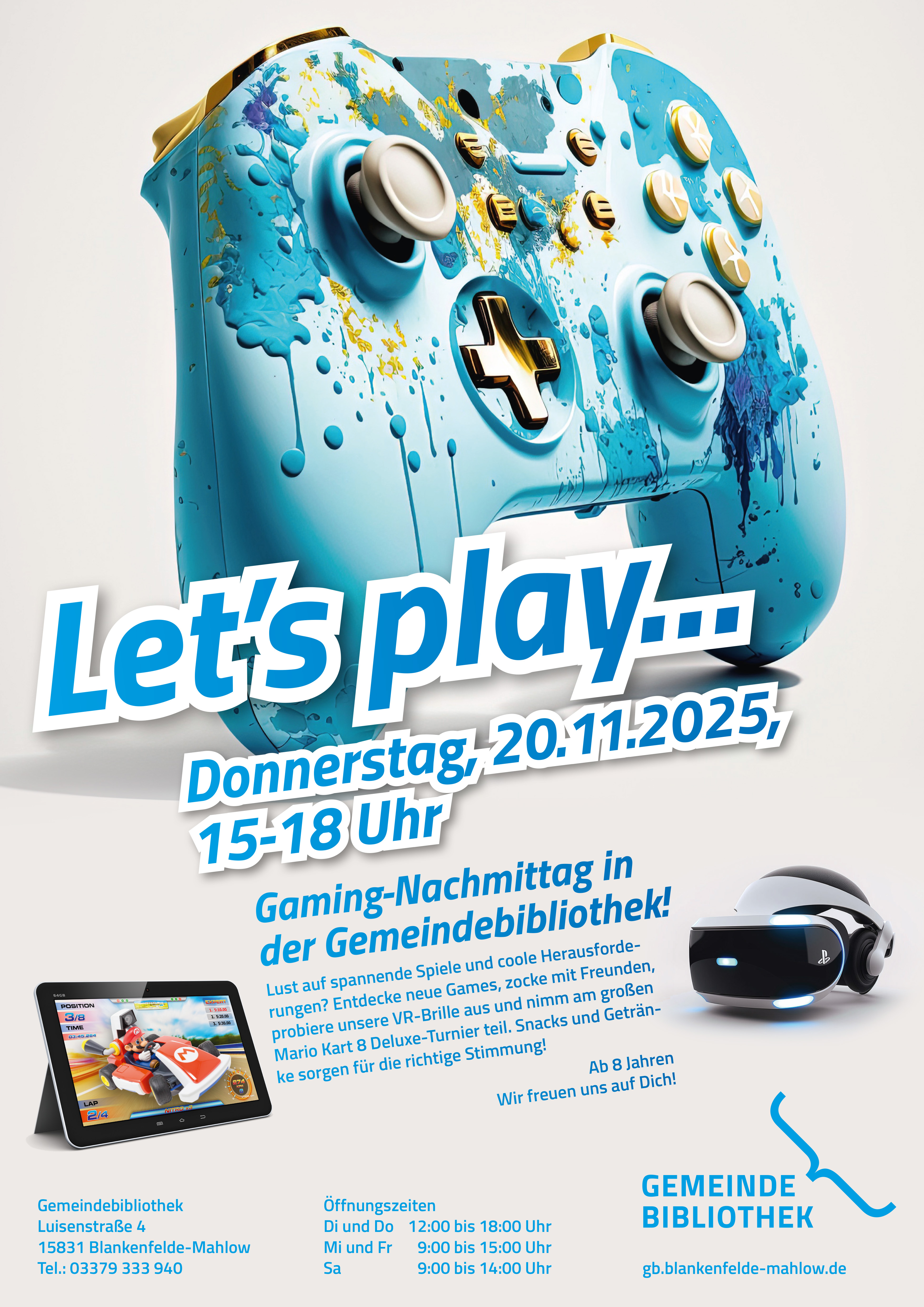 GEMEINDEBIBLIOTHEK Luisenstraße 4 15831 Blankenfelde-Mahlow TELEFON 03379 333 940 E-MAIL gemeindebibliothek@ blankenfelde-mahlow.de ÖFFNUNGSZEITEN Di, Do 12 - 18 Uhr Mi, Fr 9 - 15 Uhr Sa 9 - 14 Uhr